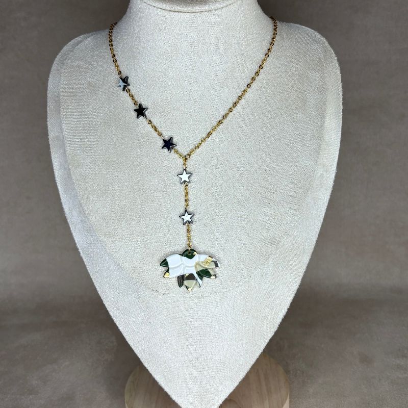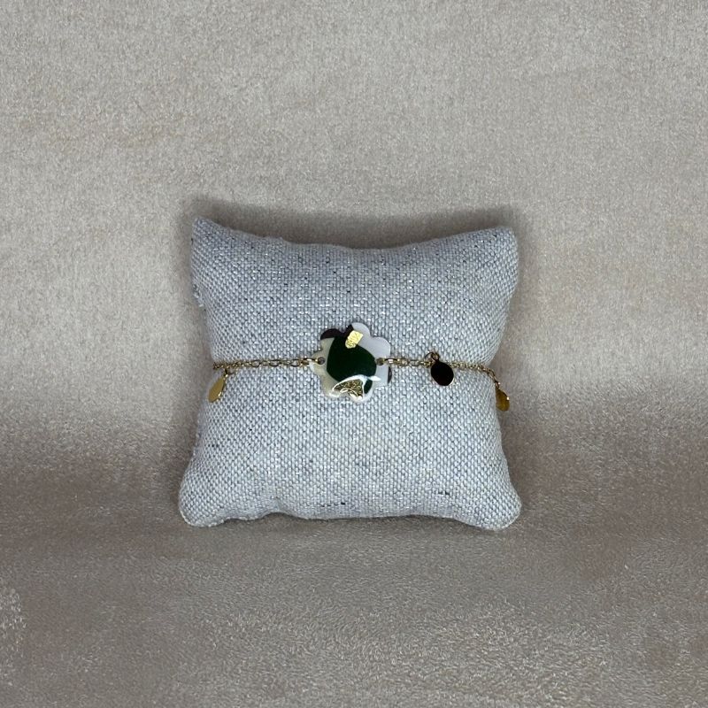 La collection Force Douce – Dorée puise son inspiration dans les couleurs emblématiques de l’armée de terre, réinterprétées avec chaleur et élégance. Les nuances de vert profond, de kaki et d’écru s’illuminent au contact de l’or, apportant une touche solaire et raffinée.